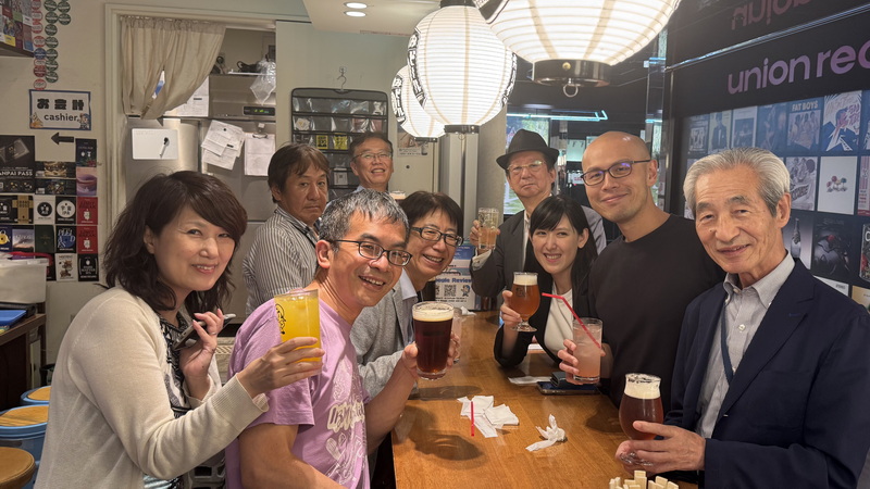 また1時間半にわたって業種を超えた幅広いディスカッションを近くのビールバーで懇親会として行いました。また徐社長の友人である台湾の医療AIスタートアップとして著名なKenkone Medical社の廖威宣社長(右から2番目)も参加いただき良い交流ができました。