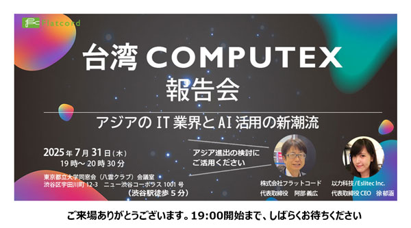 2025年7月31日(木)、台湾COMPUTEX2025展示会の報告会をフラットコード主催で開催しました。