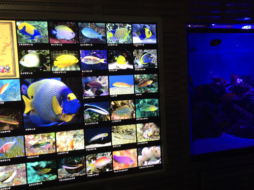 水槽の脇には、このように子供が喜びそうなお魚さんの一覧などもあります。